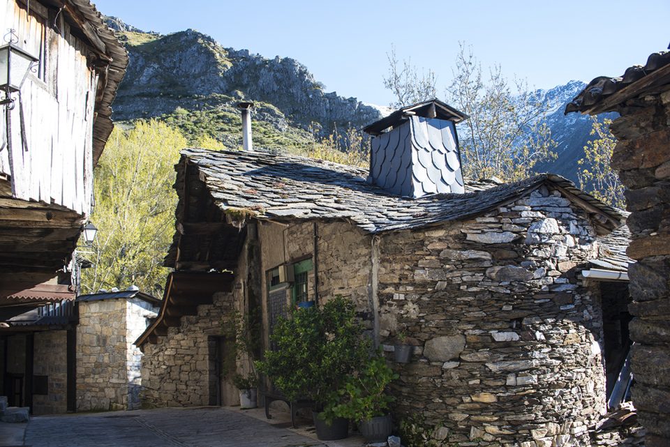 Llaman la atención sus calles cuidadosamente empedradas así como la singular arquitectura de sus casas. Paredes de piedra, puertas y ventanas de madera, tejados de pizarra y amplios balcones de madera son una constante constructiva.